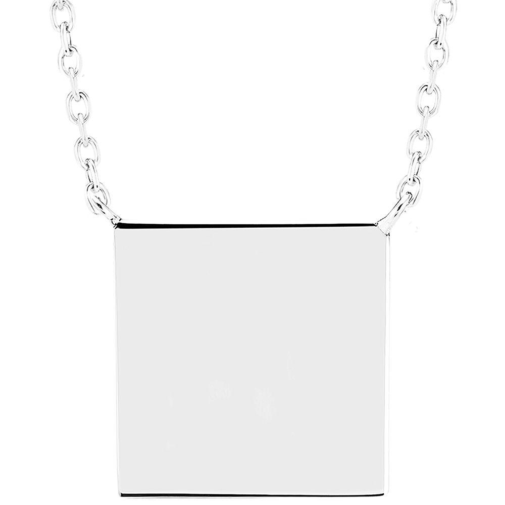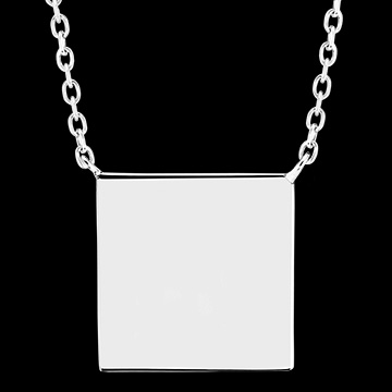 Collar de medalla cuadrada para grabar - Oro blanco 9 quilates
