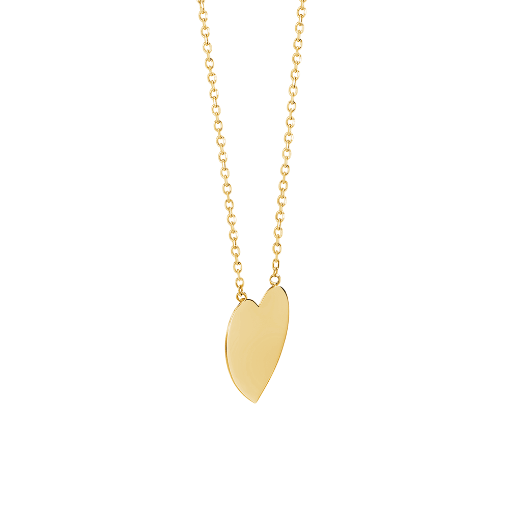 Este collar en oro amarillo 9 quilates presenta un diseño minimalista y elegante con una medalla en forma de corazón lista para grabar.