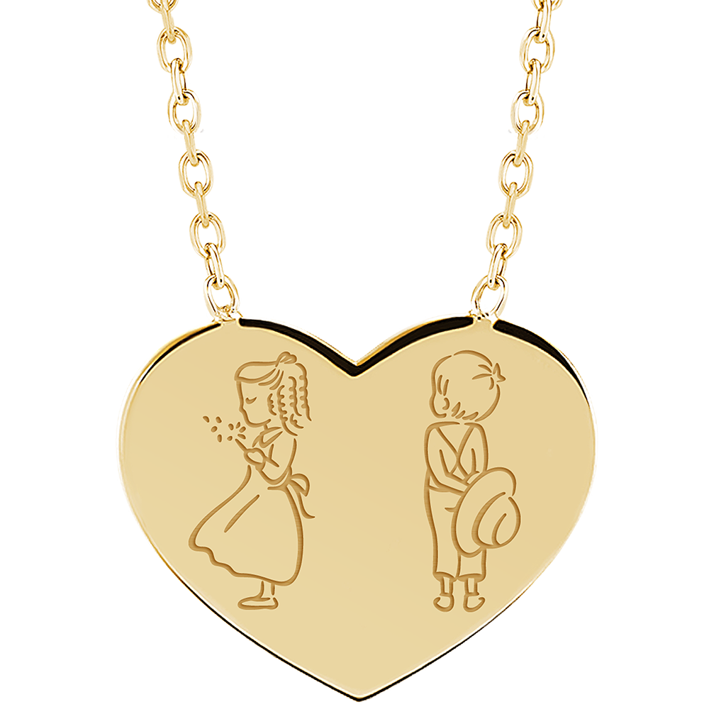 Collar con medalla grabada en forma de corazón - Oro amarillo de 9 quilates - Colección Lovely Yours - Edenly Yours