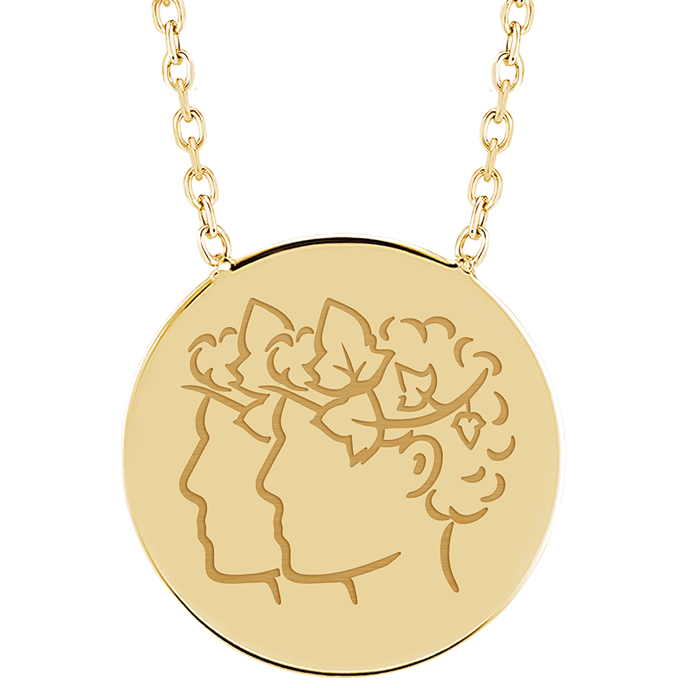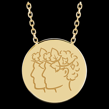 ZODIAC YOURS N.º 9Collar con medalla grabada redonda - Gemini - Oro amarillo 9 quilates ID : 4831 4.6