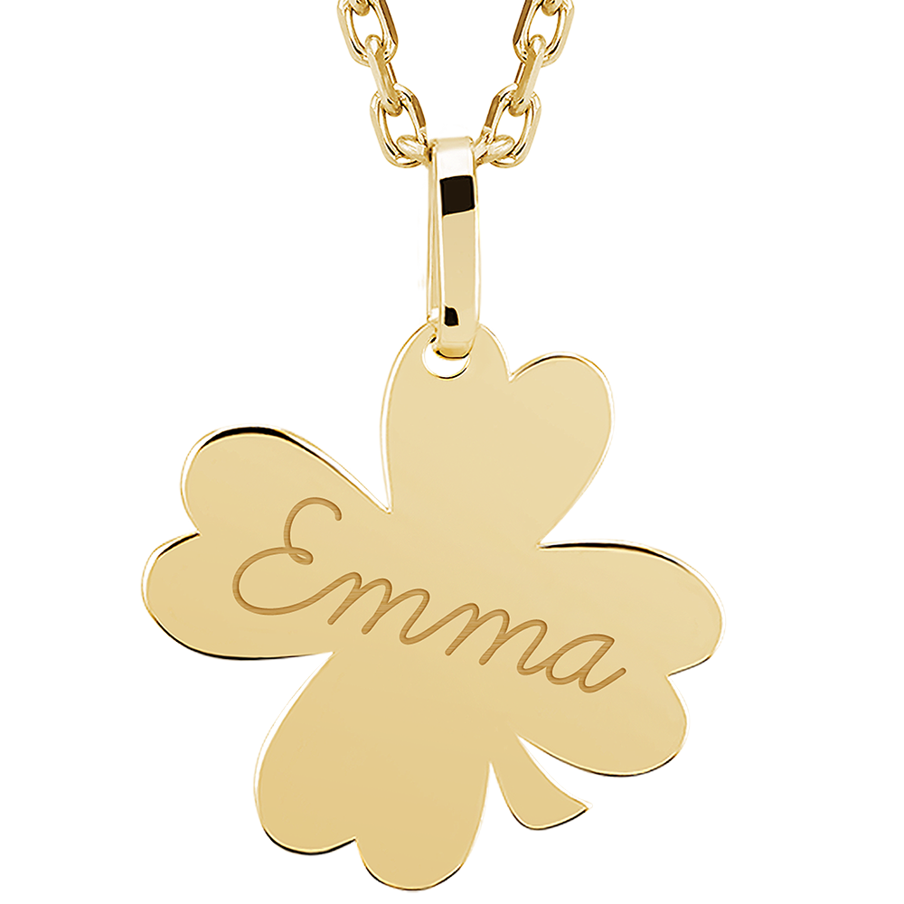 Medalla grabada en forma de trébol - Oro amarillo de 9 quilates - Colección Lovely Yours - Edenly Yours