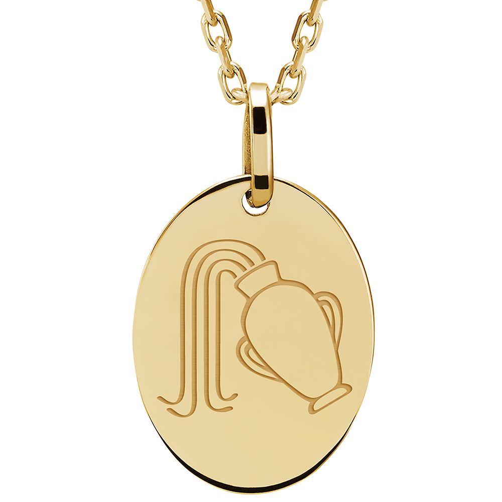 ZODIAC YOURS N.º 19Medalla grabada ovalada - Aquarius - Oro amarillo 9 quilates  ID : 4809