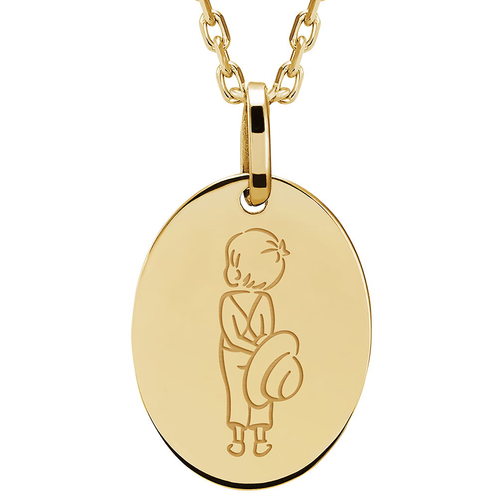 LOVELY YOURS N.º 19Medalla grabada ovalada - Oro amarillo 9 quilates ID : 4821