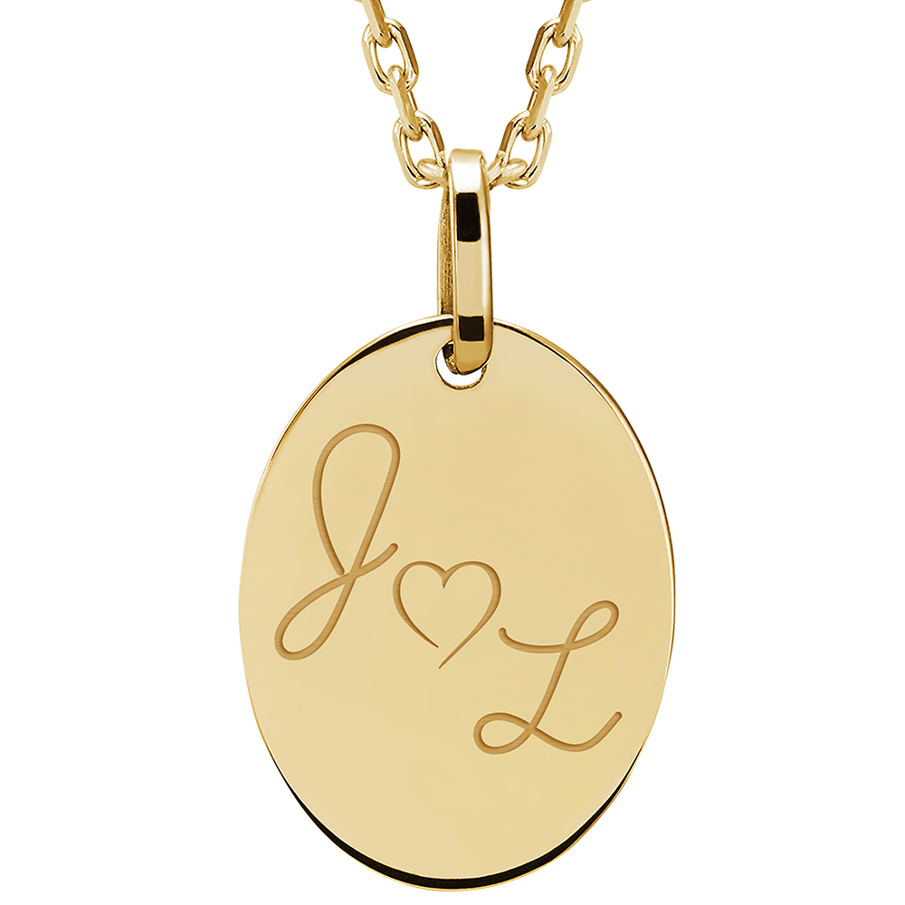 ABC YOURS N.º 19Medalla grabada ovalada - Oro amarillo 9 quilates ID : 4885