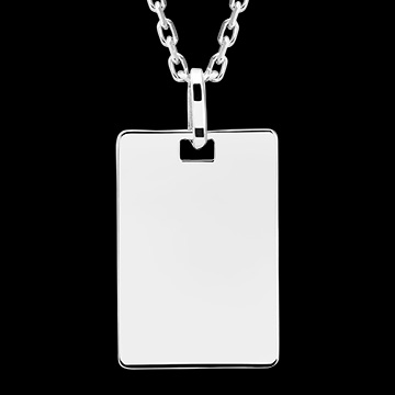 Este elegante colgante de oro blanco 9 quilates presenta un diseño rectangular sencillo, pensado para un estilo masculino refinado.