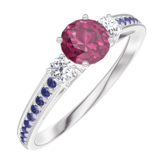 « L'ATELIER » N.º 160636Anillo Oro blanco 9 quilates - Rubí Redondo 0.3 quilates - Piedras laterales Diamante - Engastado Zafiro azul 4.5 (42)
