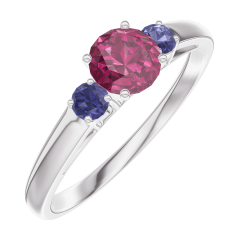 « L'ATELIER » N.º 160664Anillo Oro blanco 9 quilates - Rubí Redondo 0.3 quilates - Piedras laterales Zafiro azul 4.5 (42)