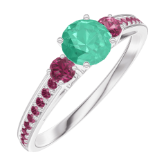 « L'ATELIER » N.º 161852Anillo Oro blanco 9 quilates - Esmeralda redondo 0.3 quilates - Piedras laterales Rubí - Engastado Rubí 4.5 (42)