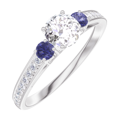 « L'ATELIER » N.º 180068Anillo Oro blanco 9 quilates - Diamante de laboratorio redondo 0.3 quilates - Piedras laterales Zafiro azul - Engastado Diamante de laboratorio 4.5 (37)