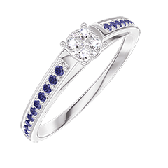 « L'ATELIER » N.º 209015Anillo Oro blanco 18 quilates - Conjunto de diamantes naturales redondo equivalente 0.3 - Engastado Zafiro azul 4.5 (37)