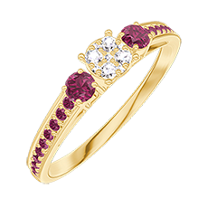 « L'ATELIER » Nº209050Anillo Oro amarillo 9 quilates - Conjunto de diamantes naturales redondo equivalente 0.3 - Piedras laterales Rubí - Engastado Rubí 4.5 (36)