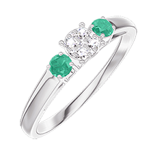 « L'ATELIER » N.º 209084Anillo Oro blanco 9 quilates - Conjunto de diamantes naturales redondo equivalente 0.3 - Piedras laterales Esmeralda 4.5 (36)