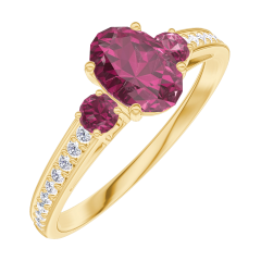 « L'ATELIER » N.º 163346Anillo Oro amarillo 9 quilates - Rubí Ovalo 0.5 quilates - Piedras laterales Rubí - Engastado Diamante 5 (4)