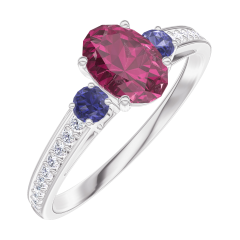 « L'ATELIER » N.º 163367Anillo Oro blanco 18 quilates - Rubí Ovalo 0.5 quilates - Piedras laterales Zafiro azul - Engastado Diamante 5 (4)