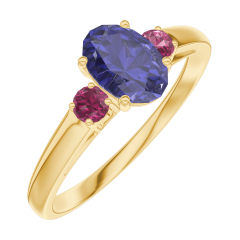 « L'ATELIER » N.º 163942Anillo Oro amarillo 9 quilates - Zafiro azul Ovalo 0.5 quilates - Piedras laterales Rubí 5 (4)