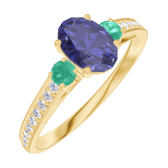 « L'ATELIER » N.º 163986Anillo Oro amarillo 9 quilates - Zafiro azul Ovalo 0.5 quilates - Piedras laterales Esmeralda - Engastado Diamante 5 (4)