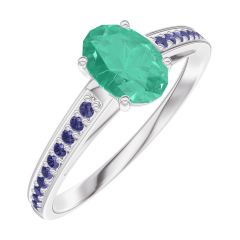 « L'ATELIER » N.º 164516Anillo Oro blanco 9 quilates - Esmeralda Ovalo 0.5 quilates - Engastado Zafiro azul 5 (4)