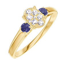 « L'ATELIER » N.º 209961Anillo Oro amarillo 18 quilates - Conjunto de diamantes naturales Ovalo equivalente 0.5 - Piedras laterales Zafiro azul 5 (4)