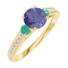 « L'ATELIER » N.º 163686Anillo Oro amarillo 9 quilates - Zafiro azul redondo 0.5 quilates - Piedras laterales Esmeralda - Engastado Diamante 4.5 (21)