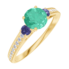 « L'ATELIER » N.º 164265Anillo Oro amarillo 18 quilates - Esmeralda Redondo 0.5 quilates - Piedras laterales Zafiro azul - Engastado Diamante 4.5 (21)