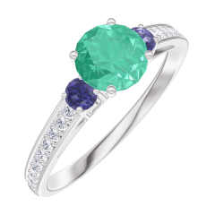 « L'ATELIER » Nº164267Anillo Oro blanco 18 quilates - Esmeralda redondo 0.5 quilates - Piedras laterales Zafiro azul - Engastado Diamante 4.9 (16)