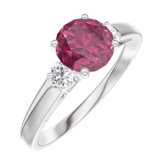 « L'ATELIER » N.º 165424Anillo Oro blanco 9 quilates - Rubí redondo 0.7 quilates - Piedras laterales Diamante 4.9 (7)