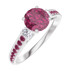 « L'ATELIER » N.º 165431Anillo Oro blanco 18 quilates - Rubí redondo 0.7 quilates - Piedras laterales Diamante - Engastado Rubí 4.9 (7)