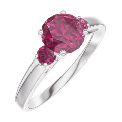 « L'ATELIER » N.º 165444Anillo Oro blanco 9 quilates - Rubí redondo 0.7 quilates - Piedras laterales Rubí 4.9 (7)