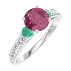 « L'ATELIER » N.º 165488Anillo Oro blanco 9 quilates - Rubí Redondo 0.7 quilates - Piedras laterales Esmeralda - Engastado Diamante 4.9 (7)