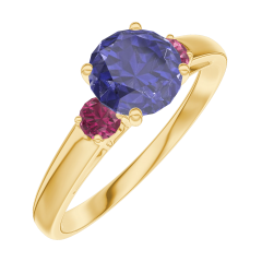 « L'ATELIER » N.º 166042Anillo Oro amarillo 9 quilates - Zafiro azul Redondo 0.7 quilates - Piedras laterales Rubí 5 (7)