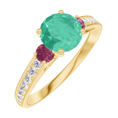 « L'ATELIER » N.º 166646Anillo Oro amarillo 9 quilates - Esmeralda redondo 0.7 quilates - Piedras laterales Rubí - Engastado Diamante 4.9 (7)