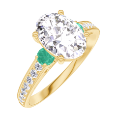 « L'ATELIER » Nº187586Anillo Oro amarillo 9 quilates - Diamante de laboratorio Ovalo 1 quilates - Piedras laterales Esmeralda - Engastado Diamante de laboratorio 4.7 (9)
