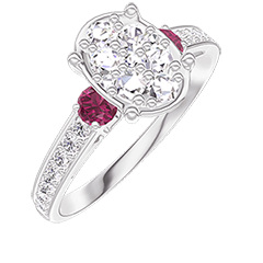« L'ATELIER » Nº211148Anillo Oro blanco 9 quilates - Conjunto de diamantes naturales Ovalo equivalente 1 - Piedras laterales Rubí - Engastado Diamante 4.8 (9)