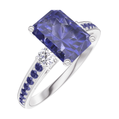 « L'ATELIER » N.º 168635Anillo Oro blanco 18 quilates - Zafiro azul Rectángulo 1 quilates - Piedras laterales Diamante - Engastado Zafiro azul 4.6 (5)