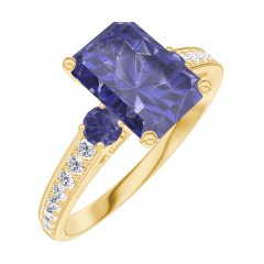 « L'ATELIER » N.º 168666Anillo Oro amarillo 9 quilates - Zafiro azul Rectángulo 1 quilates - Piedras laterales Zafiro azul - Engastado Diamante 4.4 (8)