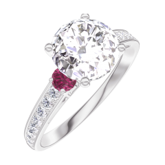 « L'ATELIER » N.º 167248Anillo Oro blanco 9 quilates - Diamante redondo 1 quilates - Piedras laterales Rubí - Engastado Diamante 4.8 (14)