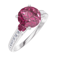 « L'ATELIER » N.º 167847Anillo Oro blanco 18 quilates - Rubí redondo 1 quilates - Piedras laterales Rubí - Engastado Diamante 4.7 (15)