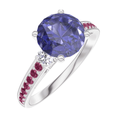 « L'ATELIER » N.º 168431Anillo Oro blanco 18 quilates - Zafiro azul redondo 1 quilates - Piedras laterales Diamante - Engastado Rubí 4.8 (14)