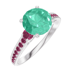 « L'ATELIER » N.º 169052Anillo Oro blanco 9 quilates - Esmeralda redondo 1 quilates - Piedras laterales Rubí - Engastado Rubí 4.7 (15)