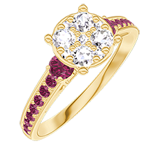 « L'ATELIER » Nº210850Anillo Oro amarillo 9 quilates - Conjunto de diamantes naturales redondo equivalente 1 - Piedras laterales Rubí - Engastado Rubí 4.8 (14)