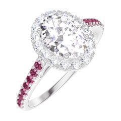 « L'ATELIER » N.º 170155Anillo Oro blanco 18 quilates - Diamante Ovalo 0.5 quilates - Halo Diamante - Engastado Rubí 4.5 (12)