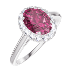 « L'ATELIER » N.º 170436Anillo Oro blanco 9 quilates - Rubí Ovalo 0.5 quilates - Halo Diamante 4.5 (12)