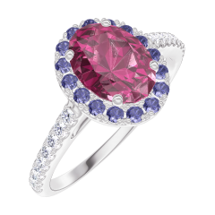 « L'ATELIER » N.º 170471Anillo Oro blanco 18 quilates - Rubí Ovalo 0.5 quilates - Halo Zafiro azul - Engastado Diamante 4.5 (12)