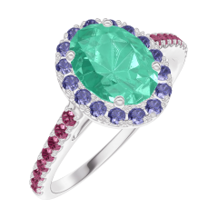 « L'ATELIER » N.º 171051Anillo Oro blanco 18 quilates - Esmeralda Ovalo 0.5 quilates - Halo Zafiro azul - Engastado Rubí 4.5 (12)