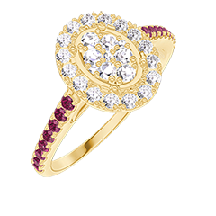 « L'ATELIER » N.º 211554Anillo Oro amarillo 9 quilates - Conjunto de diamantes naturales Ovalo equivalente 0.5 - Halo Diamante - Engastado Rubí 4.8 (12)