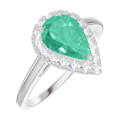 « L'ATELIER » N.º 1007123Anillo Oro blanco 9 quilates - Esmeralda sintética Pera 0.5 quilates - Halo Diamante de laboratorio 4.9 (14)
