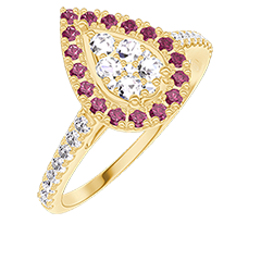 « L'ATELIER » N.º 211613Anillo Oro amarillo 18 quilates - Conjunto de diamantes naturales Pera equivalente 0.5 - Halo Rubí - Engastado Diamante 4.8 (13)