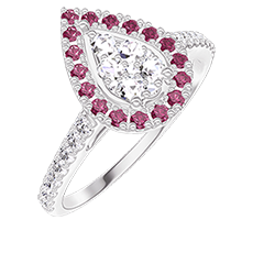 « L'ATELIER » Nº211615Anillo Oro blanco 18 quilates - Conjunto de diamantes naturales Pera equivalente 0.5 - Halo Rubí - Engastado Diamante 5 (13)