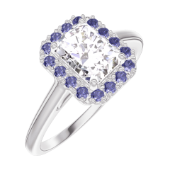 « L'ATELIER » Nº170131Anillo Oro blanco 18 quilates - Diamante Rectángulo 0.5 quilates - Halo Zafiro azul 4.7 (44)