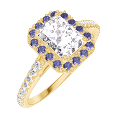 « L'ATELIER » N.º 170134Anillo Oro amarillo 9 quilates - Diamante Rectángulo 0.5 quilates - Halo Zafiro azul - Engastado Diamante 4.7 (46)